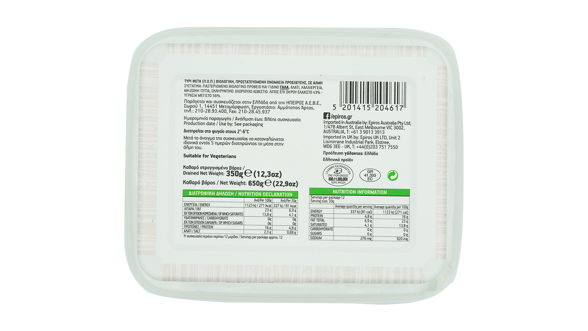 EPIROS ORGANIC FETA CHEESE 350G