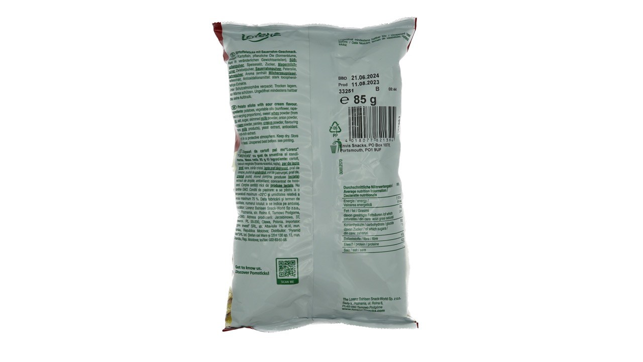 LORENZ POM STICKS SOUR CREAM FLAVOURED CHIPS